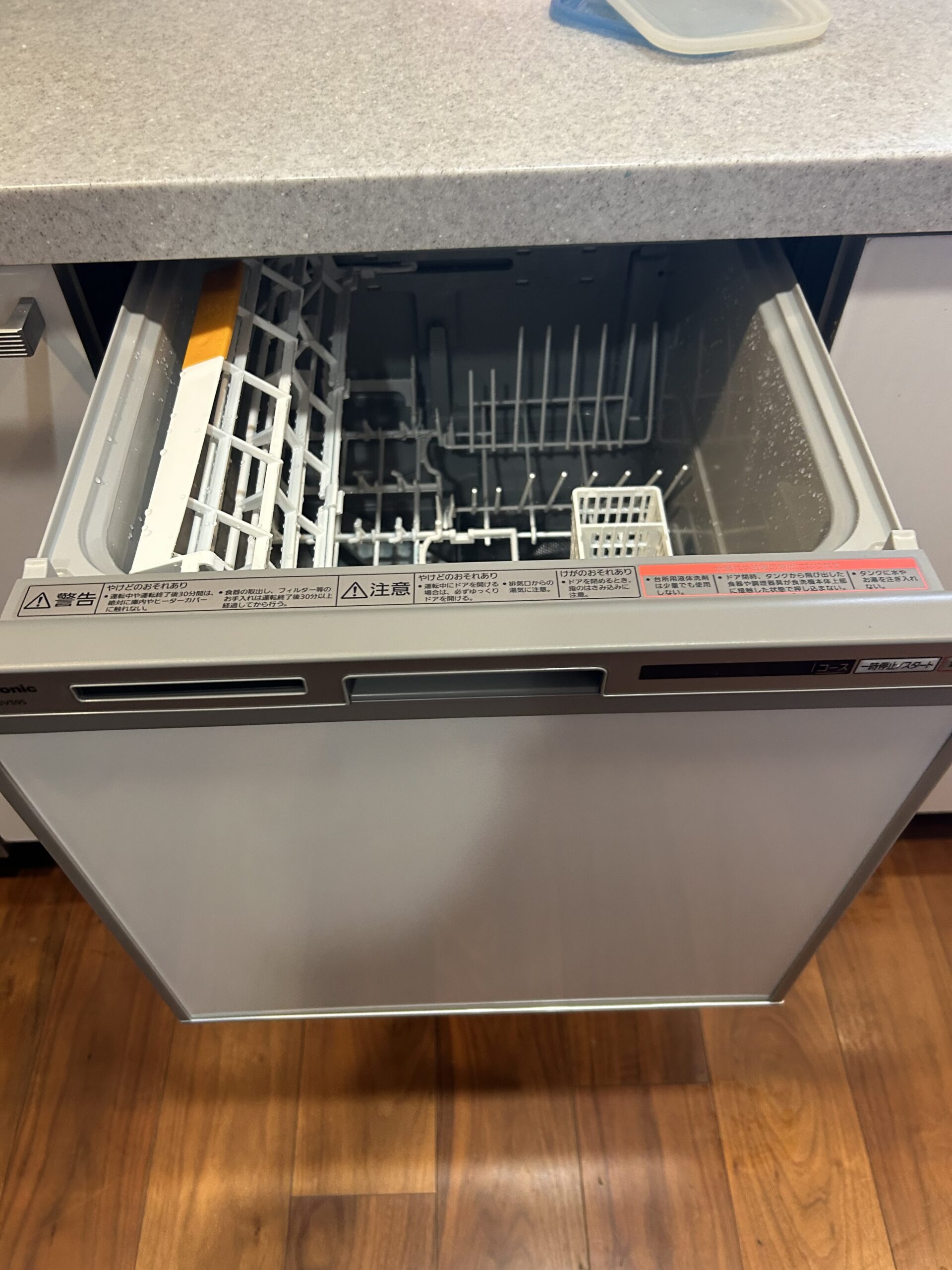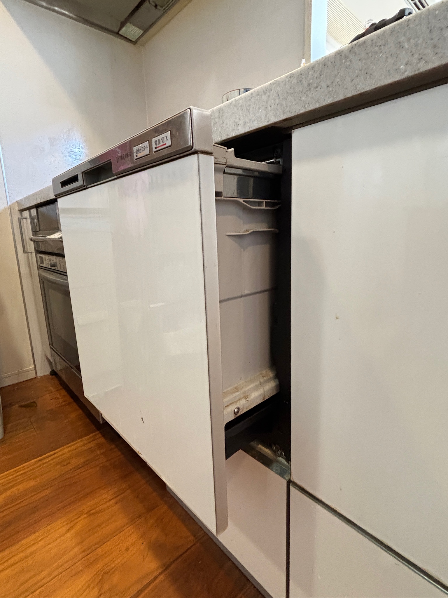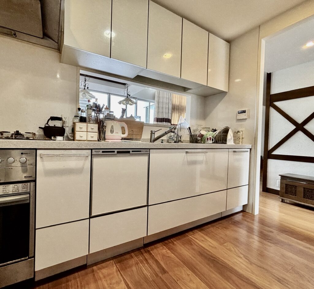一番の懸念点は、既存のキッチン扉と新しい食洗機との「色味」や「ライン」の差。今回は純正オプションのドアパネル(ビューティーホワイト)を併せてセレクト。同じ「浅型・フルオープン」タイプで新調したことで、心配していた白の色差や設置ラインのズレも少なくぴったりと収まりました。