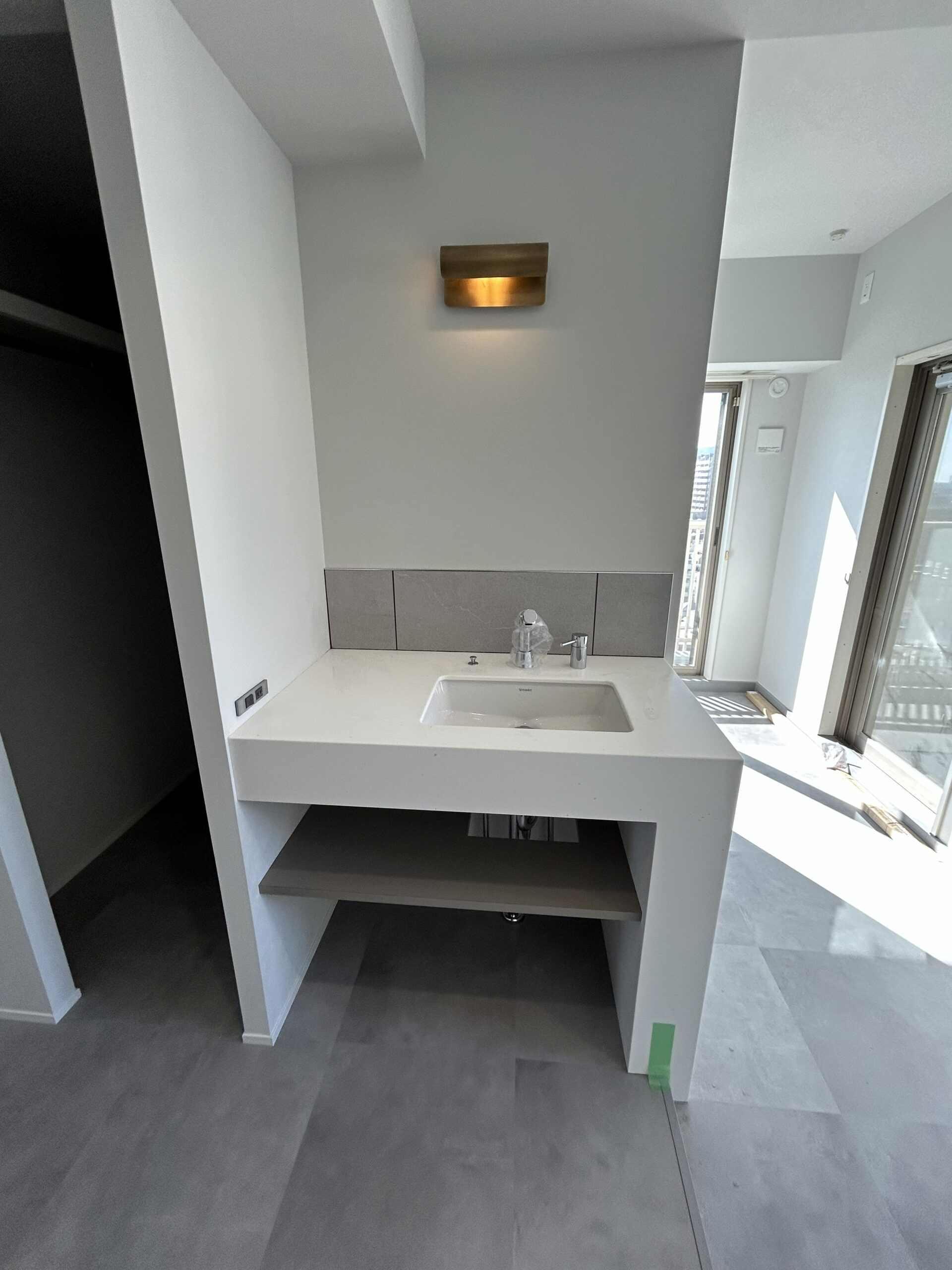今回は造作の洗面化粧台にタイルを施工することで、
